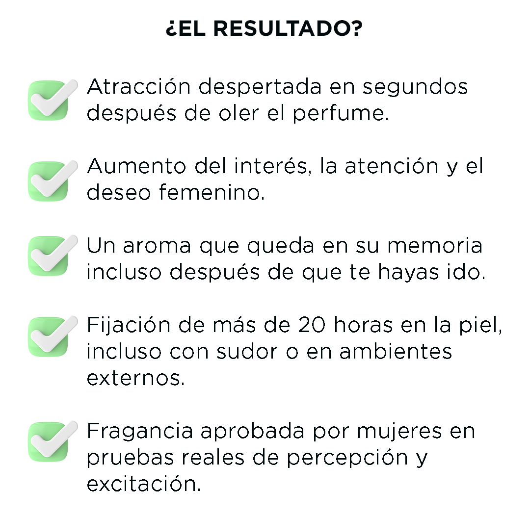 Llevo años probando perfumes; este con feromonas destaca. Proyección excelente durante todo el día y un aura de confianza que se nota. Soporte respondió rápido a mis dudas.